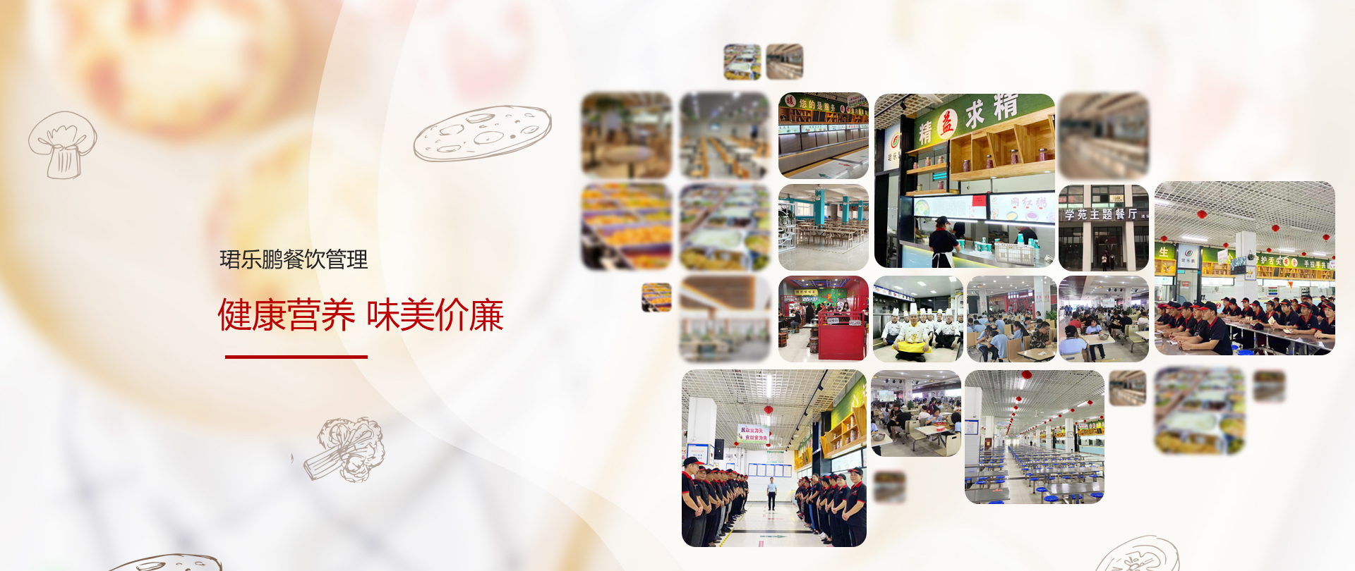威海珺樂鵬餐飲管理有限公司,是一家面向全國的餐飲管理服務(wù)機(jī)構(gòu),專注學(xué)校、醫(yī)院、企事業(yè)單位的食堂承包與托管,涵蓋膳食管理、食堂規(guī)劃咨詢、設(shè)計(jì)的專業(yè)餐飲公司, 在餐飲行業(yè)中有著全新的經(jīng)營理念和多年的實(shí)踐經(jīng)驗(yàn),重點(diǎn)推行五常管理及4D管理模式。公司始終堅(jiān)持“以食品安全求生存,以服務(wù)質(zhì)量求發(fā)展”,全面深化改革,持續(xù)優(yōu)化整合資源,自成立公司之日起, 公司以“做好專業(yè)食堂承包為服務(wù)宗旨,以提高各服務(wù)單位用餐質(zhì)量為已任”,營養(yǎng)合理搭配為企業(yè)原則,堅(jiān)持“健康營養(yǎng)、味美價(jià)廉”的八字方針